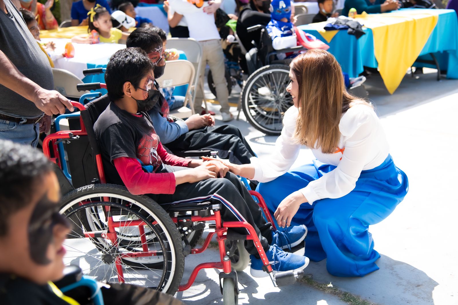 La presidenta de DIF, Rubí Enríquez junto a la directora general Lucía Chavira compartieron del evento que tuvo un programa de actividades inclusivas, destacando un concurso de disfraces que generó felices emociones en los participantes, quienes llevaron a cabo un verdadero desfile de súper héroes, algunos transitando en sus sillas de ruedas.