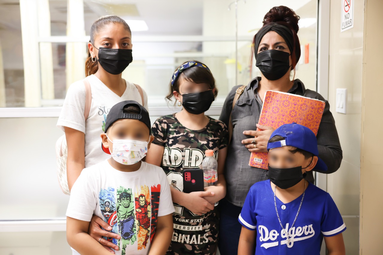 Una niña y un niño acompañados de sus familias, en representación de los 10 pacientes que reciben tratamiento en el Pabellón Oncológico estuvieron presentes en la entrega llevada a cabo en las instalaciones del Hospital Infantil.