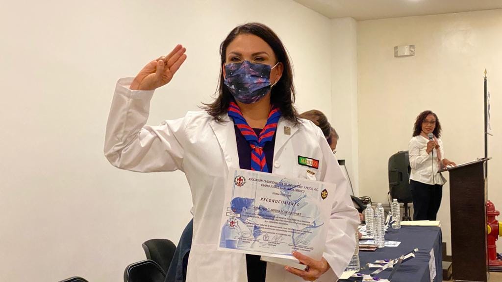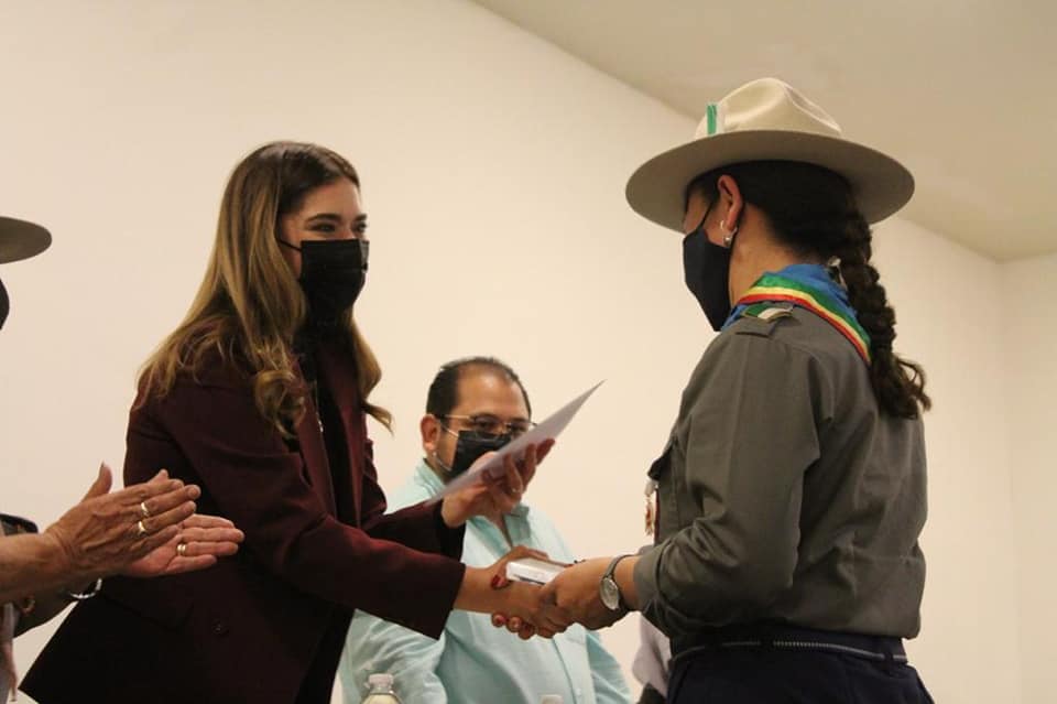 Rubí Enríquez, presidenta del DIF Municipal, participó en la entrega de medallas que la asociación tradicionalista de Scouts: tiro y pesca, llevó a cabo para reconocer al personal médico así como a voluntarios, por su entregada labor durante la época más álgida de la pandemia por Covid-19.