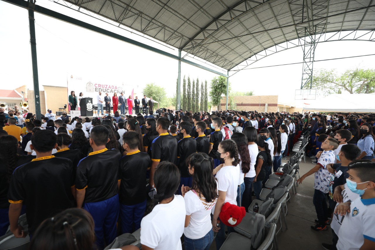 El Presidente Municipal, quien estuvo acompañado por su esposa, la presidenta del DIF Municipal, Rubí Enríquez, dijo a los estudiantes que el Gobierno Municipal aporta a través de la Cruzada por la Educación un granito de arena, sin embargo quienes realmente hacen el esfuerzo por sacarlos adelante son sus padres, abuelos y maestros.