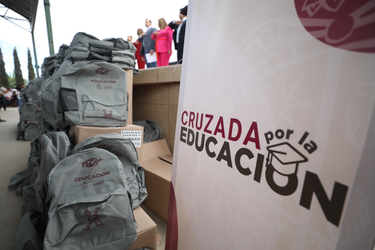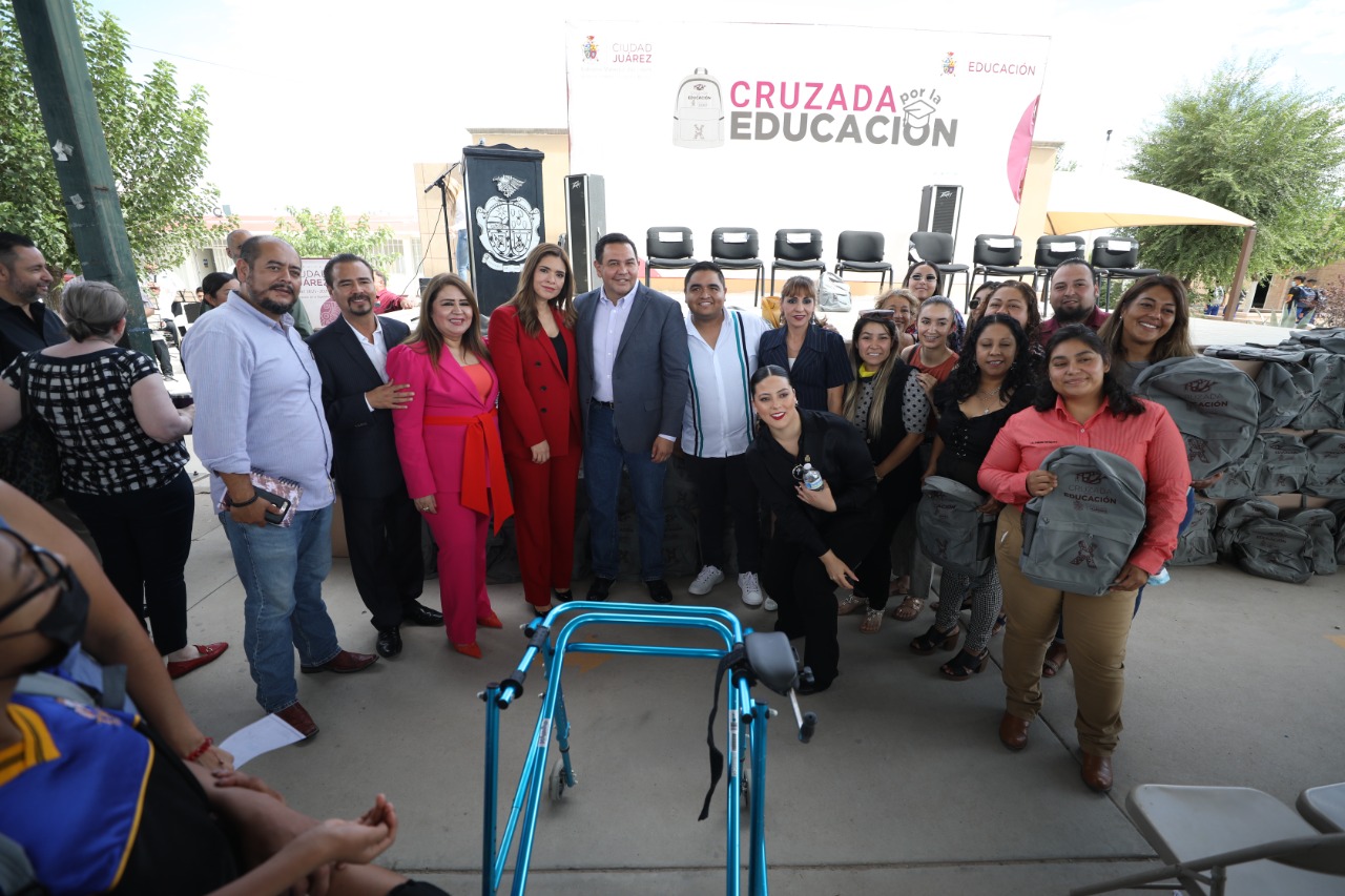 El Presidente Municipal, Cruz Pérez Cuéllar, en compañía de Rubí Enríquez, presidenta del DIF Municipal dieron arranque al programa Cruzada por la Educación, a través del cual se estarán entregando durante los siguientes días 110 mil mochilas y útiles escolares a estudiantes de primarias y secundarias públicas de la ciudad.