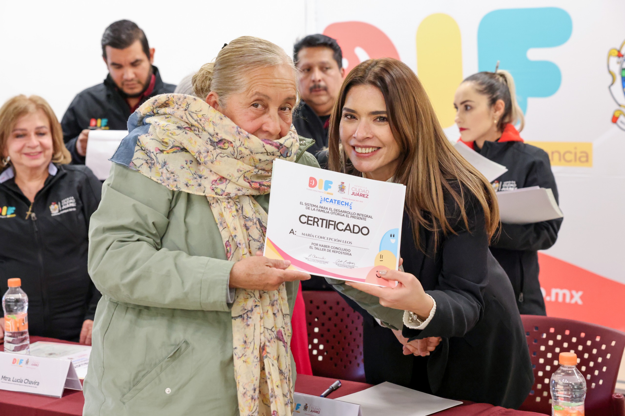 También se entregaron certificados a 15 personas mayores por concluir la primaria y una más por finalizar la secundaria a través del Instituto Chihuahuense de Educación para los Adultos (ICHEA).