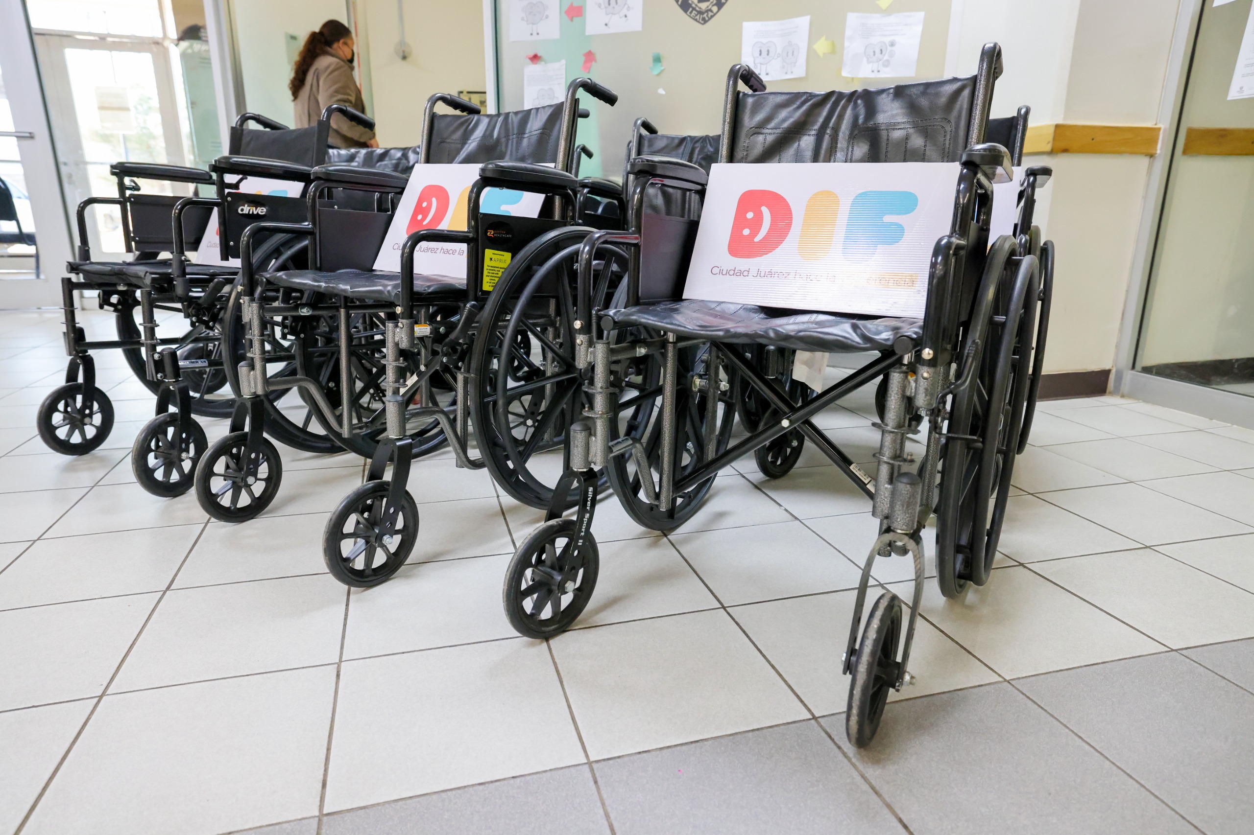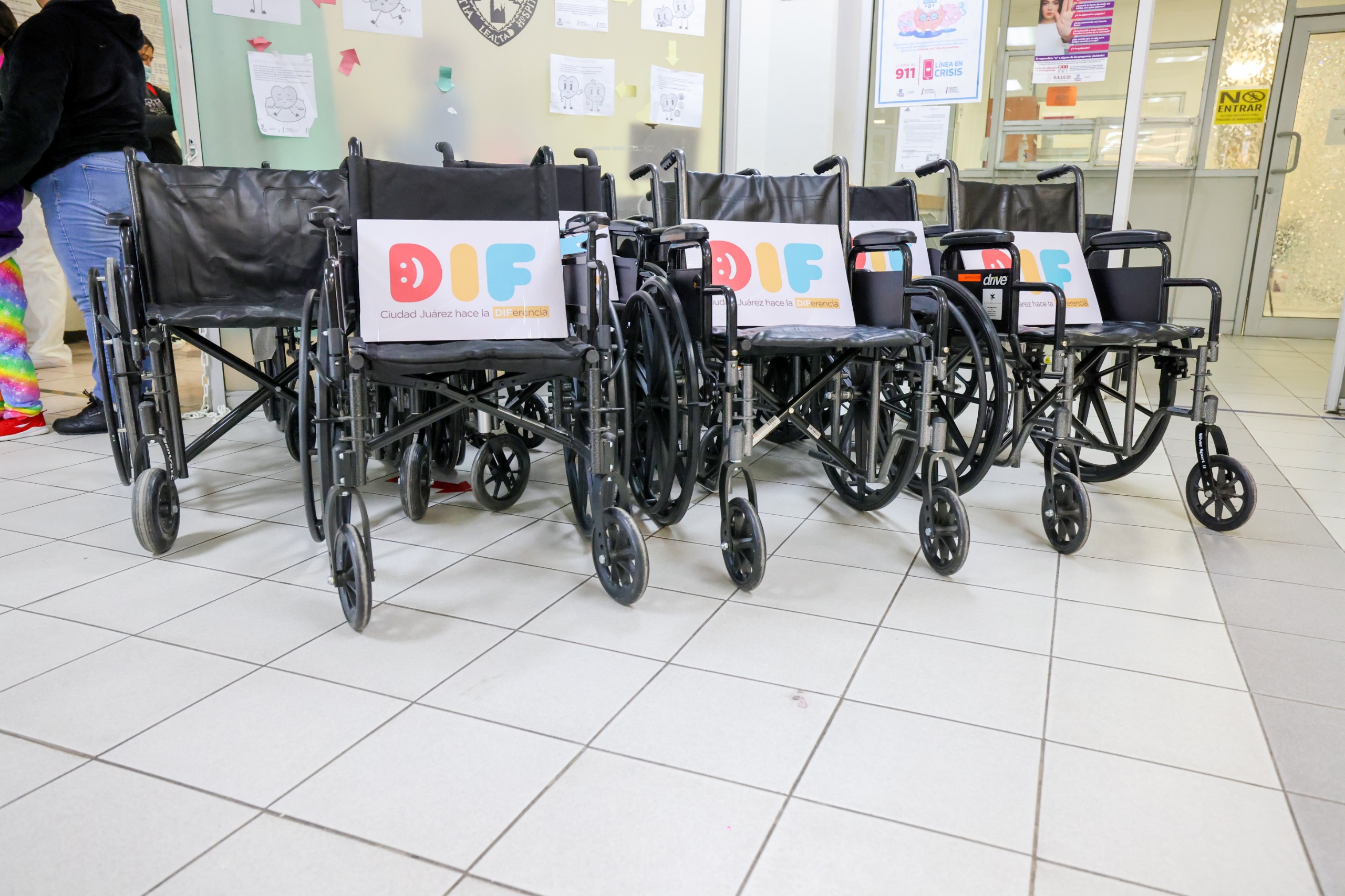 A favor de las infancias, Rubí Enríquez, presidenta del Sistema para el Desarrollo Integral de la Familia del Municipio de Juárez (DIF) hizo la entrega de 10 sillas de ruedas en el Hospital Infantil de Especializades (HIES).