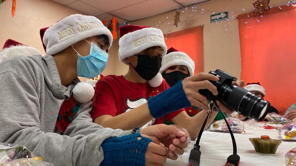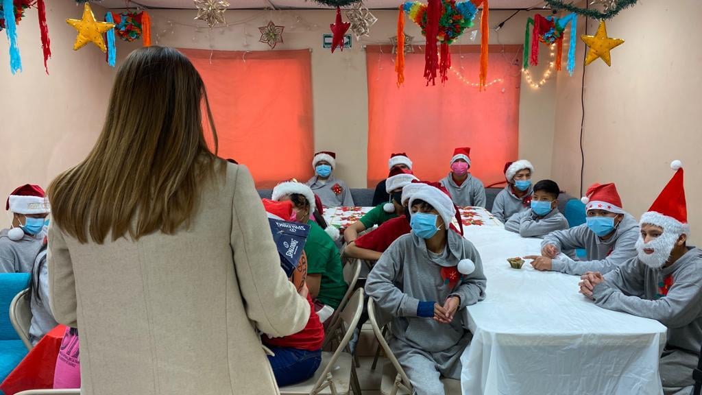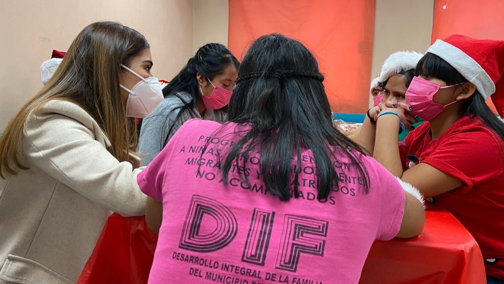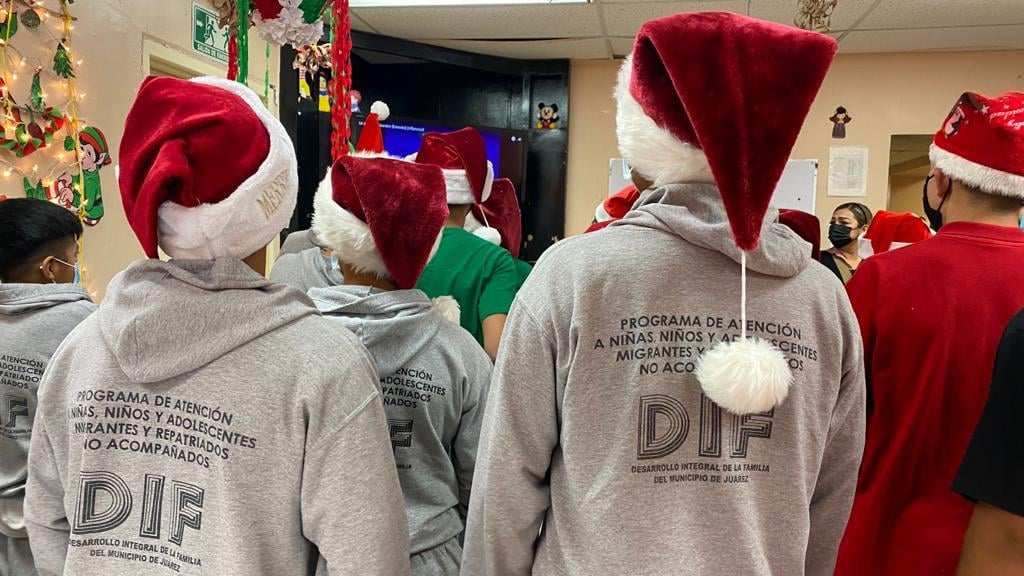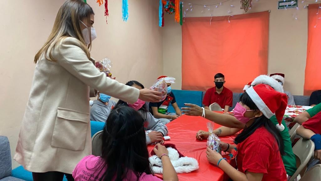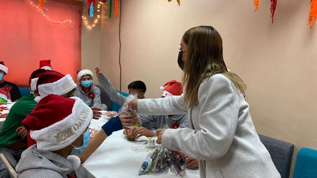 Niños y adolescentes en condiciones de movilidad que se encuentran en el albergue México mi Hogar, disfrutaron hoy de una posada que les organizó el personal del Sistema de Desarrollo Integral de la Familia del Municipio de Juárez y la presidenta de la institución Rubí Enríquez.