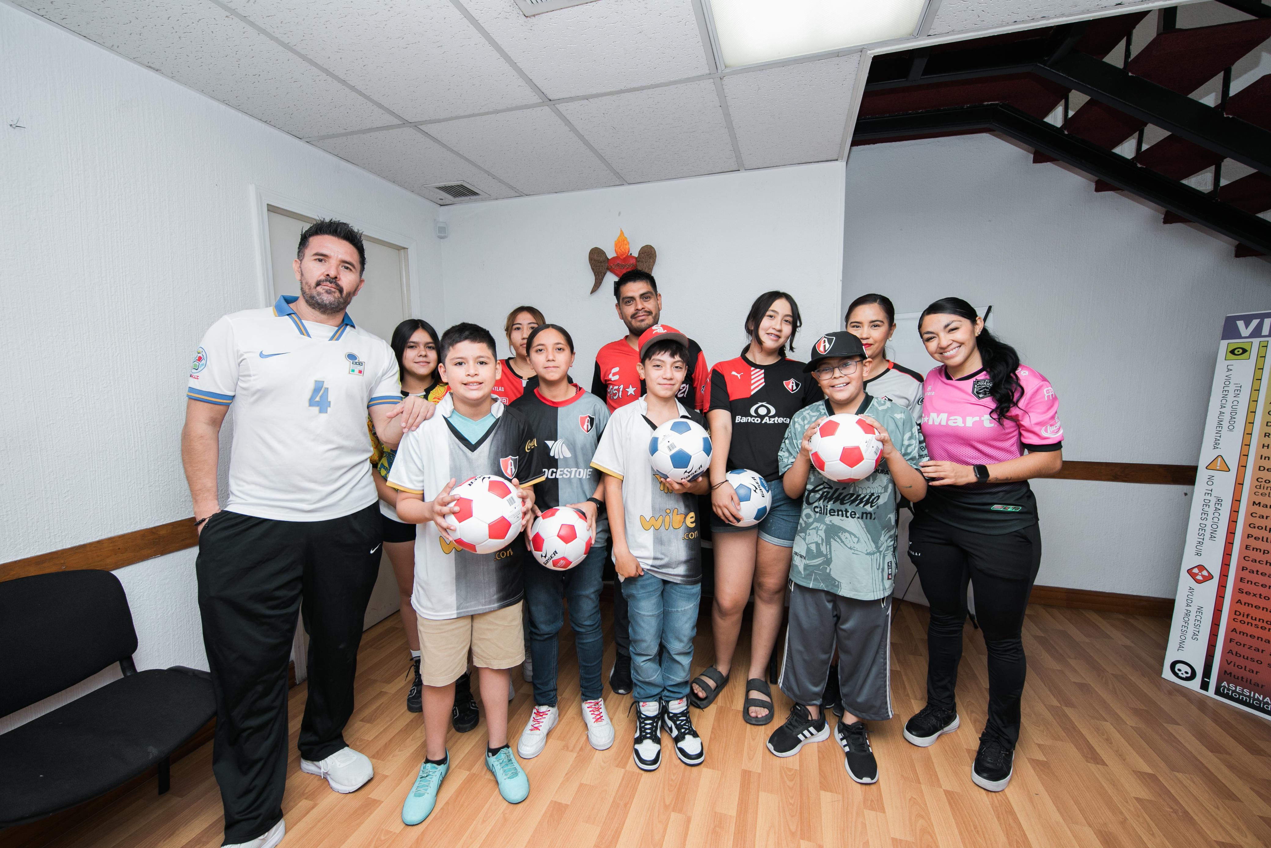 Gilberto Gutiérrez, subdirector del DIF Municipal y la futbolista también se reunieron con niñas, niños y adolescentes que pertenecen al equipo Académicos FC, a todos se les obsequiaron balones de futbol autografiados por la deportista.