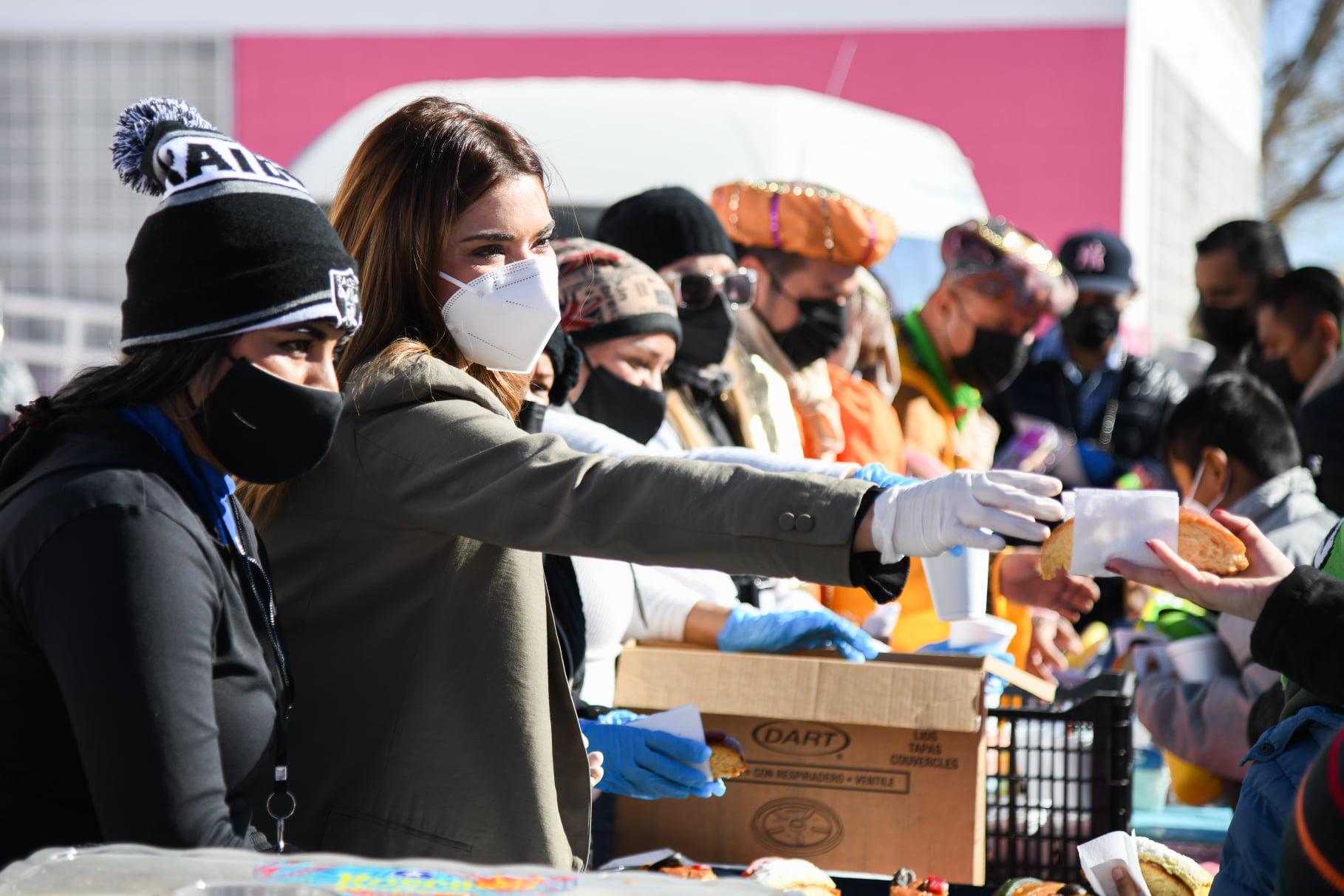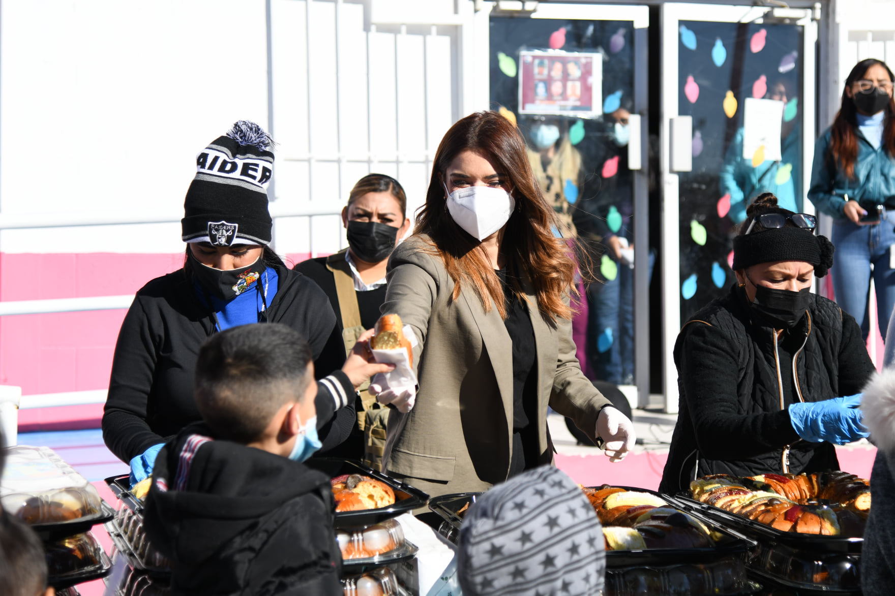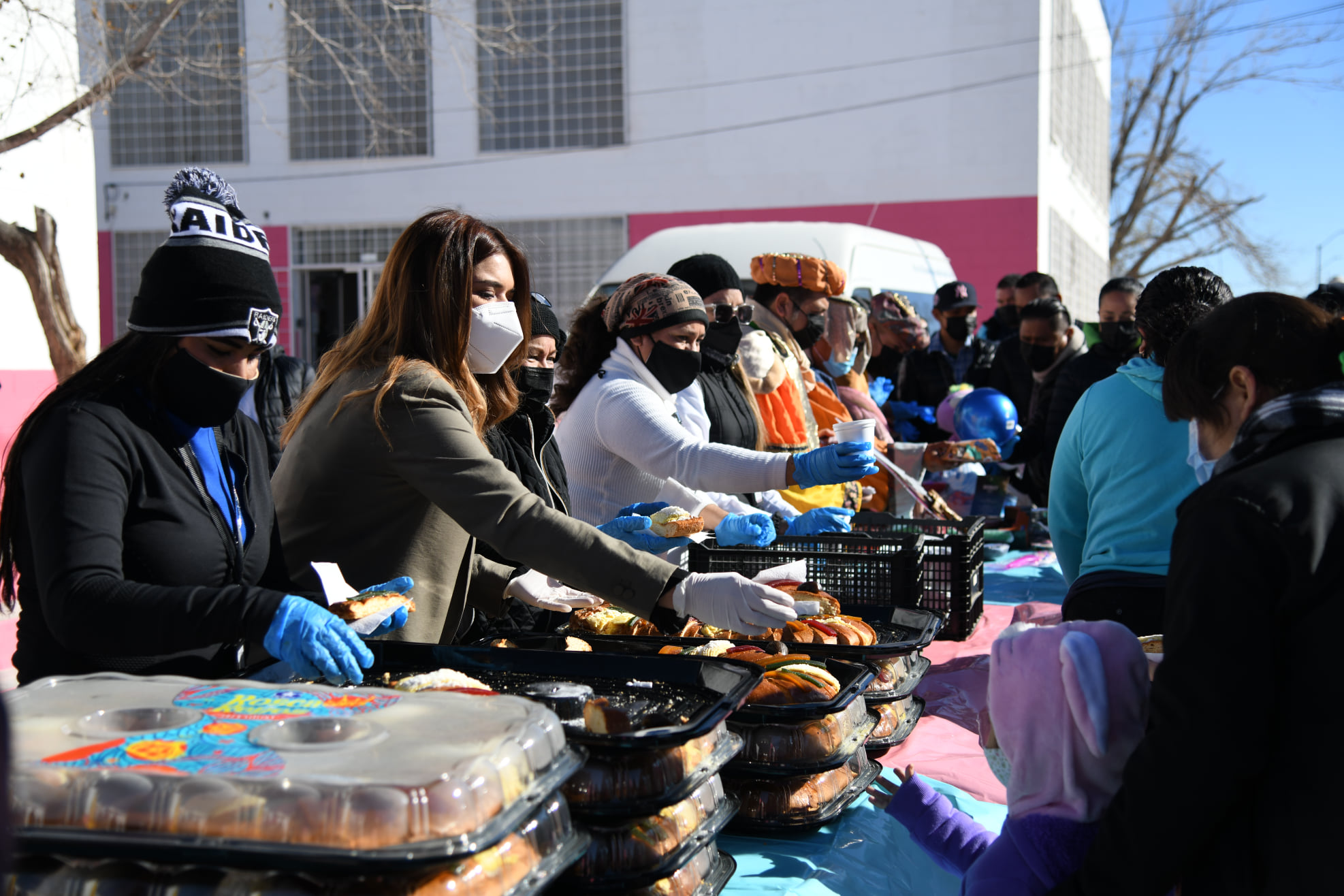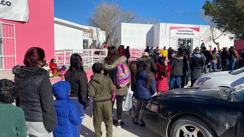 Desde temprana hora colaboradores de DIF y Grupo Salinas montaron el escenario para recibir a decenas de niñas y niños con sus Familias, acomodando juguetes, roscas y chocolate caliente, en tanto los invitados formaron una larga fila para convivir con Melchor Gaspar y Baltazar.