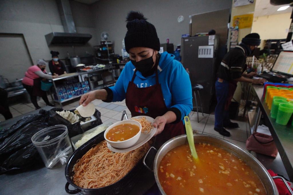 También se está proporcionando ropa abrigadora a quienes acuden a las instalaciones del comedor. El albergue se encuentra ubicado frente al Monumento a Juárez en las calles 20 de Noviembre y Constitución.